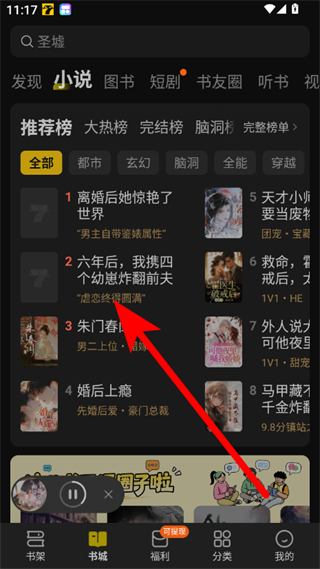2、在听书页面中,选择想听的小说,比如任意一本在推荐榜中的小说,点击进入听书播放界面。