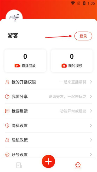 2、在个人页面中,找到登录选项,点击该选项进入京东创作工具的账号登录界面。