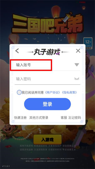 3、点击账号输入框,填写需要登录的账号。