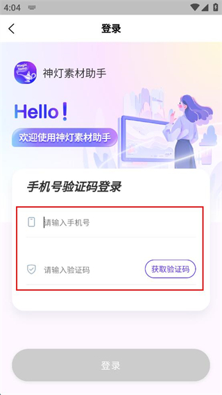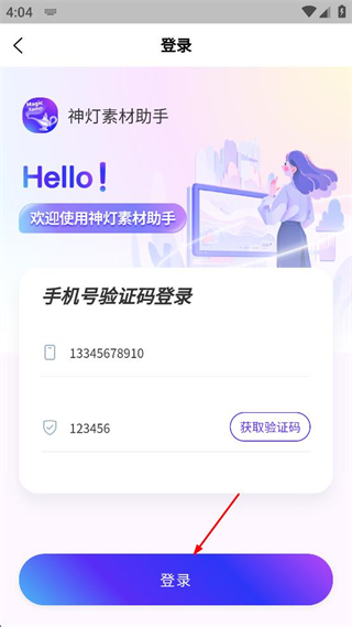 4、确认信息填写完成后,点击登录按钮,即可完成神灯素材助手的账号登录。