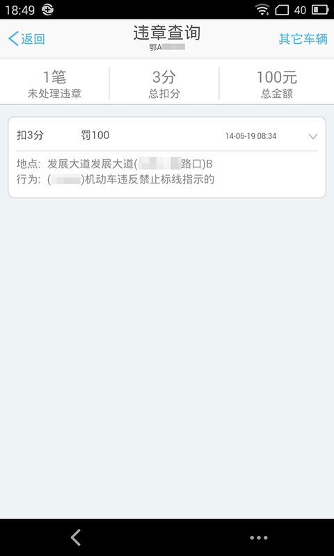 4、根据个人和车辆的详细信息进行上传,轻松的查看个人是否违章的信息;