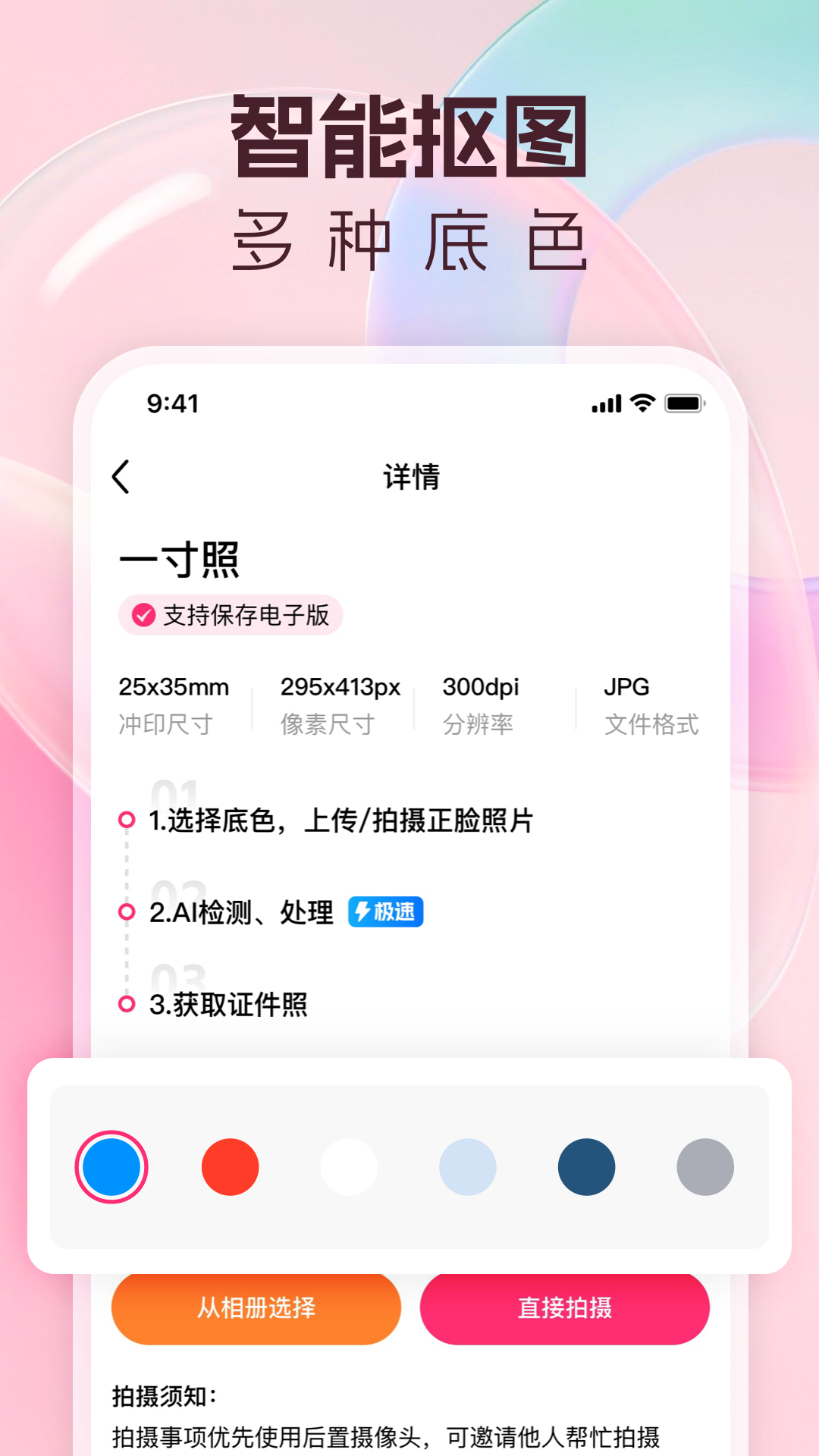 2、在针对证件照的制作上简单几步搞定,不用费时费力跑照相馆拍摄;