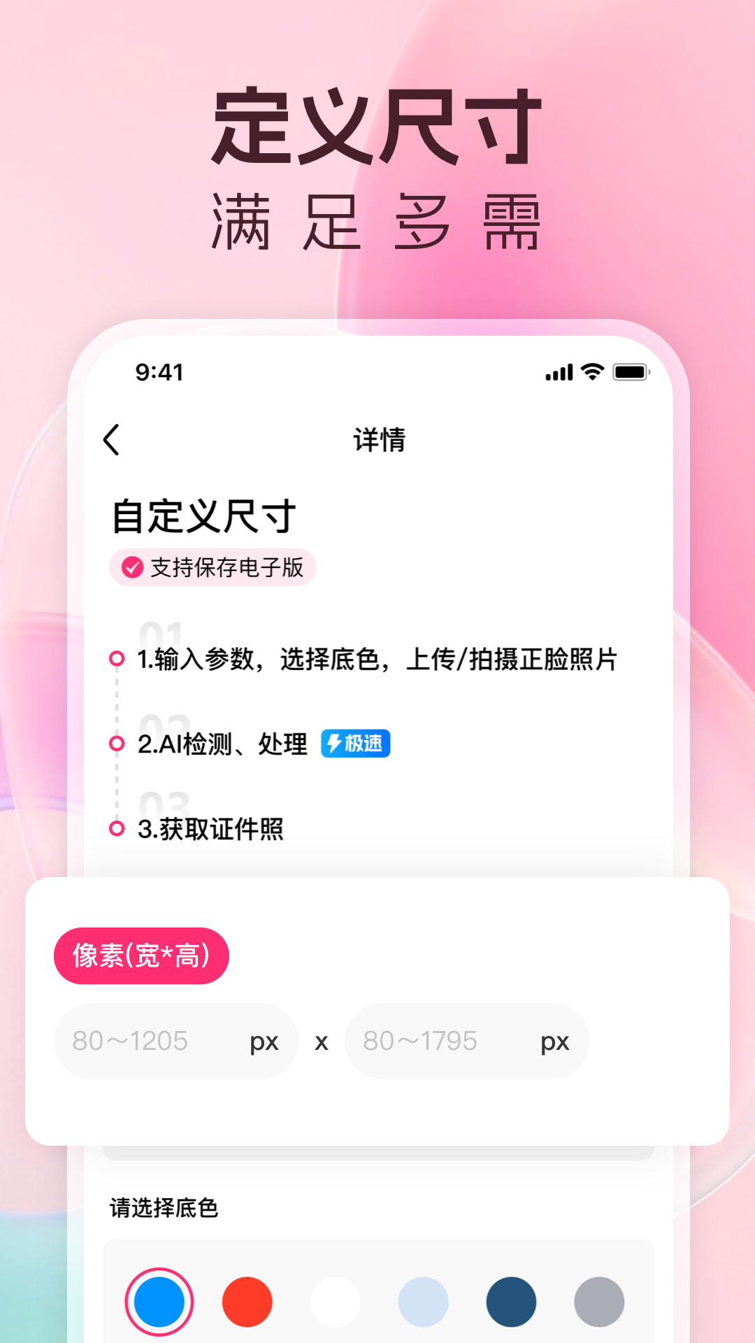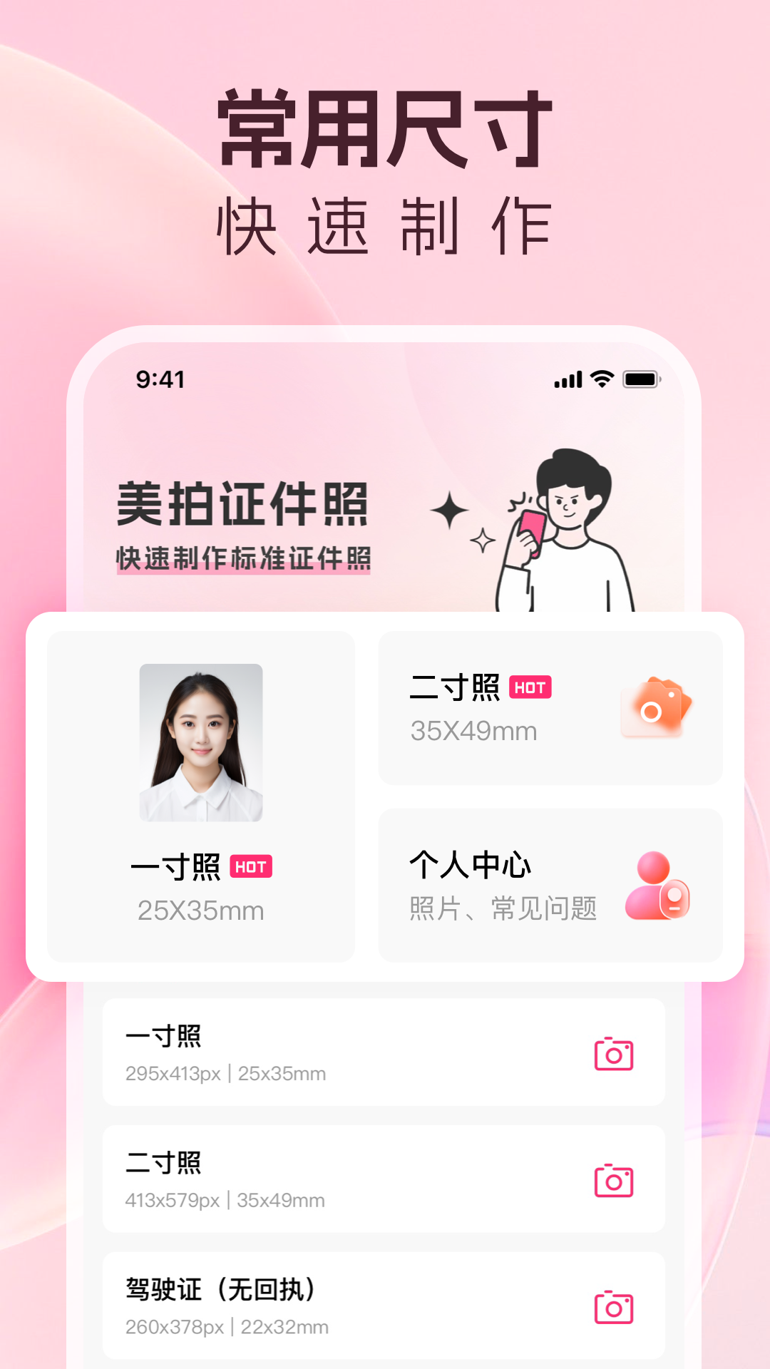3、内置多种规格齐全的证件照尺寸,轻松实现快速的拍摄合格证件照。
