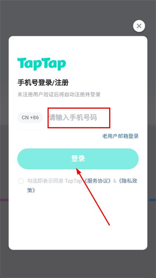 2、在登录窗口的输入框中,填写手机号,点击登录,获取验证码。