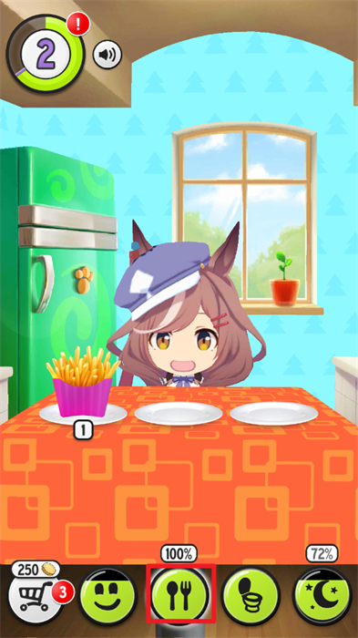 3、点击桌面上的食物喂给你的角色,以使得你的角色能够快速的拥有饱腹感;