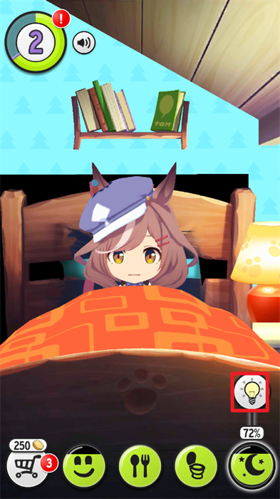6、点击屏幕下方的灯泡按钮,以使得你的角色能够快速的进入到睡眠的状态之中,当睡眠状态达到100%时,即可打开灯。
