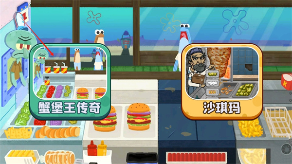 2、这里除了创新的蟹堡王,还有经典的沙琪玛玩法,在这里经历双重不同经营美食制作玩法,点击这里的【蟹堡王传奇】进入海绵宝宝的世界;
