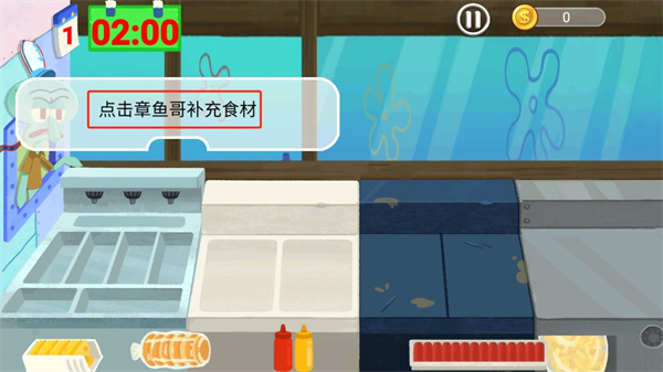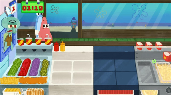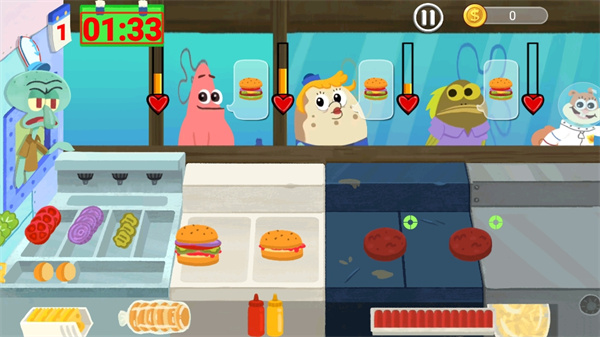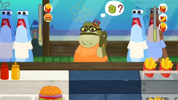 每天面对各种海绵宝宝电视剧中的海底生物,为不同顾客所带来的美食对订单给成功制作出来;