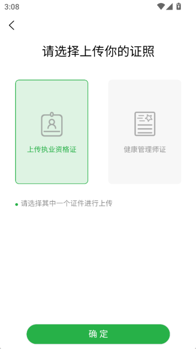 6、然后选择自己的执业资格证或健康管理师证,两个选择其中一个即可;