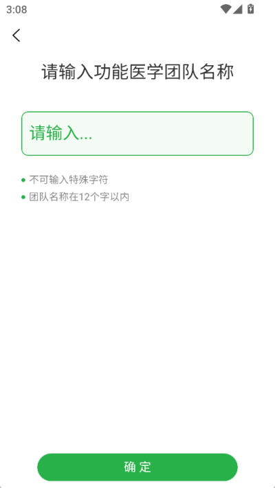 2、选择完毕后,输入自己的团队名称,注意不可输入特殊字符,输入完成后点击确定;