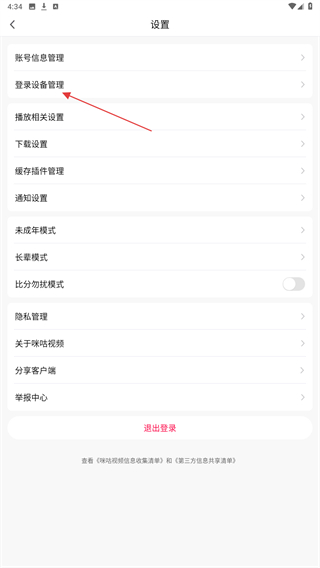 3、在设置页面中,找到并点击登录设备管理的选项。