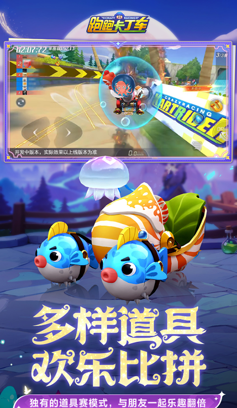 3、丰富的道具系统:在比赛中不仅能体验速度的快感,还可以利用各种道具来增强比赛体验。从加速器到攻击性道具,各种选择让你在竞速中占据优势,玩法变得更加多元化和刺激。