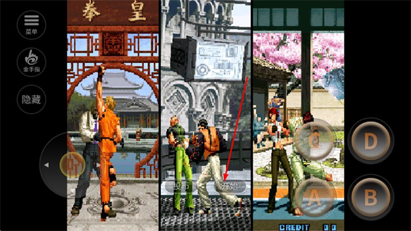 1、在拳皇2002游戏界面,点击开始进入游戏流程。
