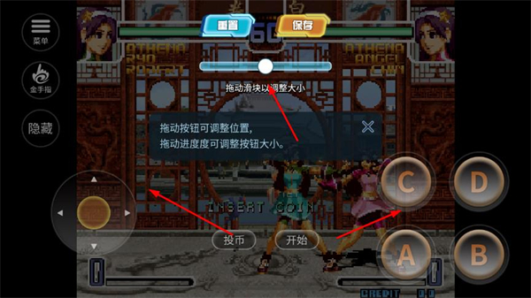 5、在调整页面,拖动按钮调整位置、拖动滑块调整大小,完成后点击保存即可修改键位。