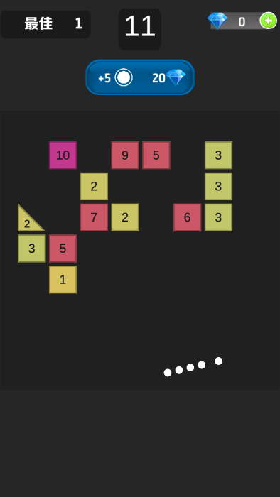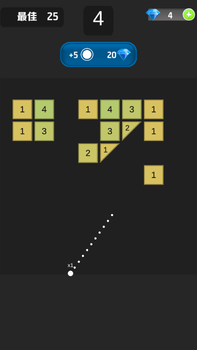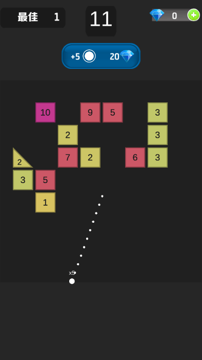 4、控制轨迹:熟悉并控制弹球的射击角度,精准控制弹球在屏幕上的跳动轨迹,使其准确命中目标方块。