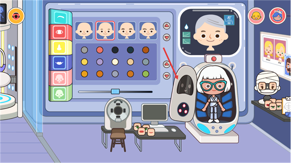 2、进入后,将角色移动到美容舱内,点击美容舱的空位,角色会自动进入。