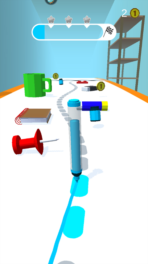 1、独特操控体验:操控彩笔前行,在躲避障碍、获取奖励中感受别具一格的游戏操控乐趣。