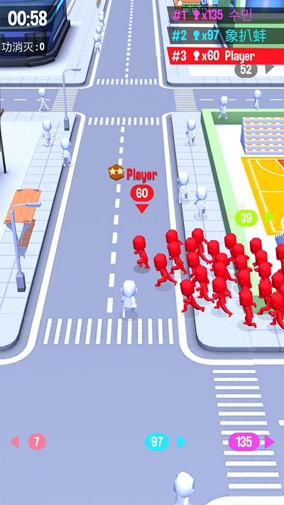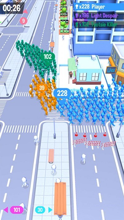 3、色彩吸睛策略:瞧啊,那五颜六色的小人队伍是不是晃得人眼花缭乱?玩家得操控自家特殊颜色的小人队伍,使出浑身解数吸引更多人员。