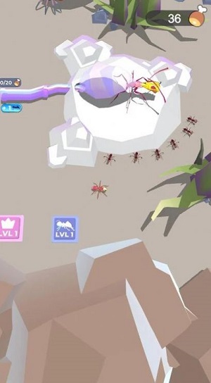 2、扩大蚂蚁领地:蚂蚁军队向周边区域进军在战斗中运用巧妙的策略指挥蚂蚁军队战胜敌人无论是其他昆虫势力还是敌对的蚂蚁部落。