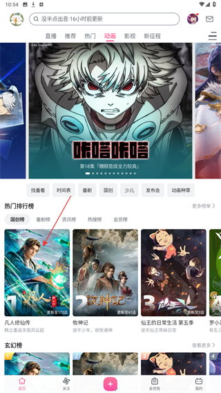 1、打开哔哩哔哩,点击上方动画的标签,进入动画频道。