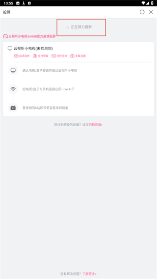 4、在搜索页面内,呈现正在努力搜索的提示,需稍后操作。
