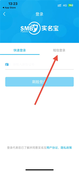 3、在登录界面,点击短信登录选项,切换至短信登录的信息填写界面。