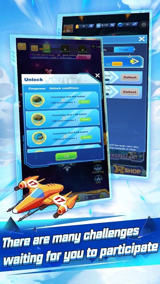 2、画面精美的视觉体验:游戏采用高质量的3D图形技术,精致的界面设计和华丽的弹幕效果,使得每一次战斗场景都充满视觉冲击力。背景音效与战斗音效的完美结合,将玩家带入一个真实且刺激的星际战斗环境,让人流连忘返。