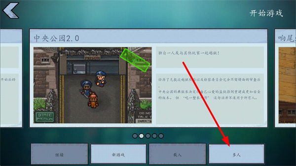 2、进入开始游戏页面后,找到底部的多人按钮并点击,以此进入多人模式的选择界面。