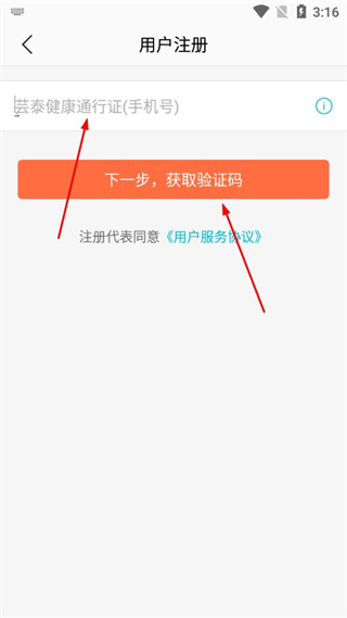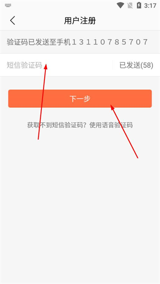 3、在用户注册页填写手机号码,点击下一步,获取验证码,触发验证码发送。