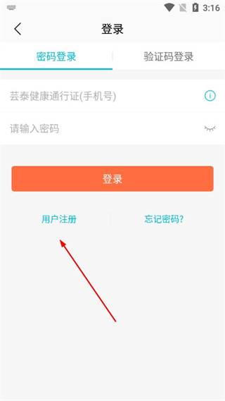 2、在登录页面中,找到用户注册选项并点击,进入用户注册界面。