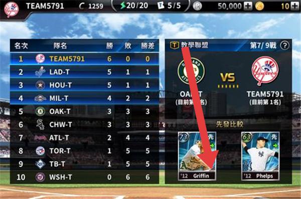 2、联赛模式(棒球/足球),选高排名球队(TEAM5791、曼城),研究对手先发(‘12Griffin/阵容,调整己方战术(换球员、变阵型)。