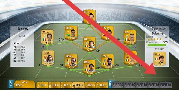 3、阵容设置页,优先选高评分球员(Klose76总评),搭配“4-5-1”等阵型,点击球员卡片连线,激活“Chemistry(默契)”,提升团队战力。