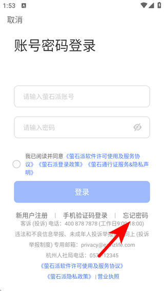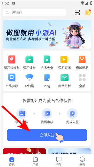 1、打开萤石派,点击首页立即入驻,进入账号密码登录操作界面。