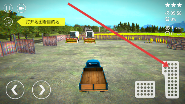 3、需要根据地图上的橙色目标标记,规划行驶路线,驾驶卡车前往该目的地完成任务。