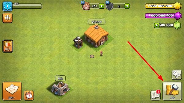 1、进入部落冲突主界面,找到右下角商店选项并点击,打开建筑选择界面。