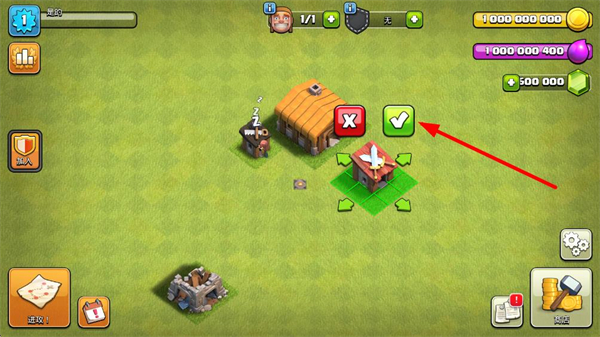 4、确认位置后,点击界面中的绿色对勾按钮,即可完成该建筑的建造操作。