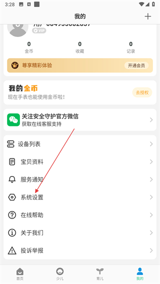 2、在个人界面中,找到系统设置选项,点击该选项跳转至应用的设置页面。
