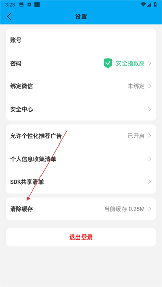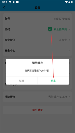 3、在设置页面里,找到清除缓存选项,点击该选项弹出缓存清理的确认窗口。