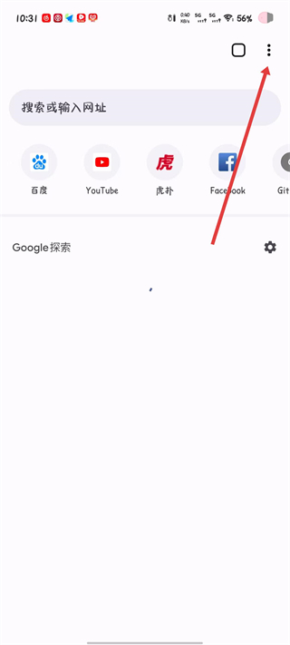 1、打开谷歌浏览器进入主页面,点击页面右上角的三点图标,弹出功能操作菜单。