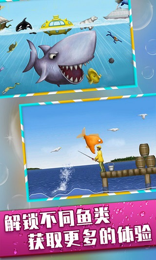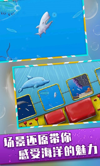 3、卡通视觉风格:采用3D卡通风格打造海洋场景,鱼类造型可爱,场景色彩丰富,搭配动态光影,带来良好的视觉体验。
