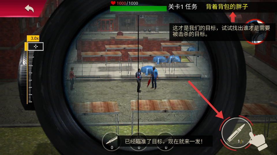 2、每个关卡要爆头三个关键目标,打中路人质会被扣钱扣到想当劫匪。