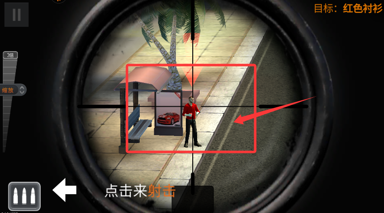 2、屏息调整瞄准镜焦距,锁定红色目标后扣动扳机完成致命一击。
