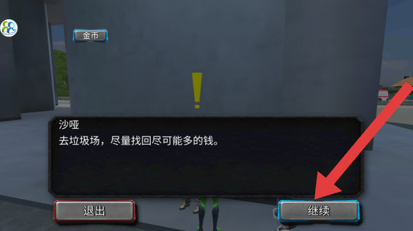 2、任务内容“去垃圾场,尽量找回尽可能多的钱”,点击【继续】按钮方可去完成任务。