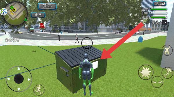 3、根据任务提示【去垃圾场】,玩家在城市环境中探索互动的画面,属于超能力题材的都市冒险场景。