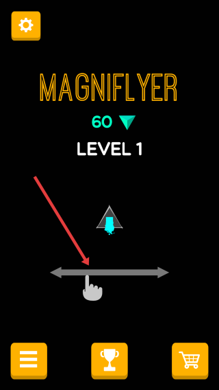 1、点击LEVEL1进入关卡,通过滑动控制飞行物移动。