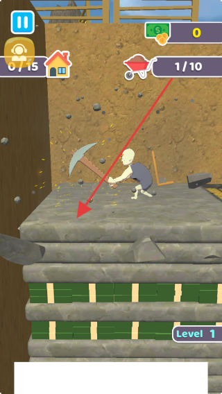 2、靠近矿石堆,进行矿石采集,收集矿石资源,同时留意游戏中的任务提示,完成如装满手推车等任务。