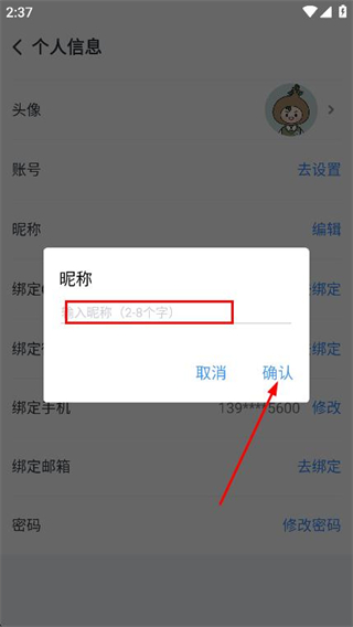 4、填写新昵称,完成后点击确认,即可完成昵称修改。