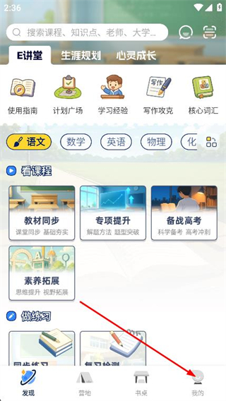 1、打开升学e网通APP,点击底部导航栏最右侧的我的。