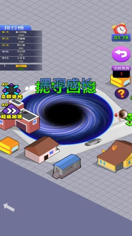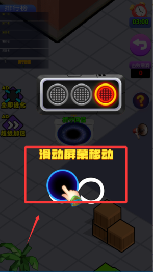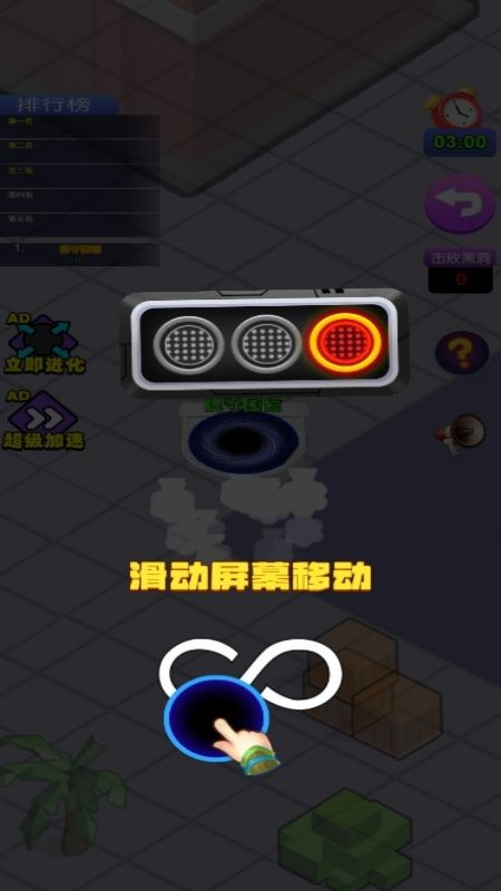 2、核心玩法具备高度魔性,通过简单的滑动操作控制黑洞移动,吞噬场景中的各类物体,操作门槛低但趣味性十足。