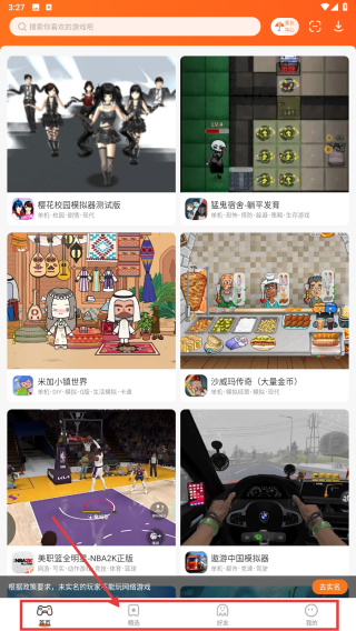 1、打开游戏平台APP,点击底部游戏栏,进入游戏推荐页面,浏览寻找目标游戏入口。